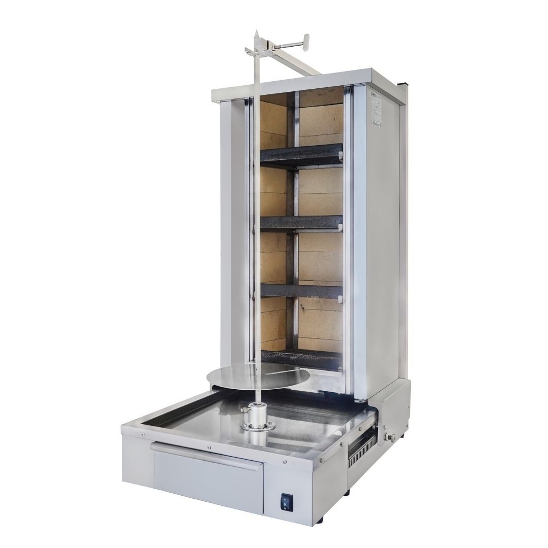 3 Dik Radyanlı Alttan Motorlu Döner Ocağı. Gıda hijyen sektörünün en üst bağımsız belgelendirme kuruluşu olan NSF (National Sanitation Foundaditon) tarafından belgelendirilmiştir. Lezzetli Döner Kebab yapmak için gıda tüzüğüne uygun prosedür ve proseslerle 'CE' standart ve direktiflerine uygun olarak üretilmiştir.