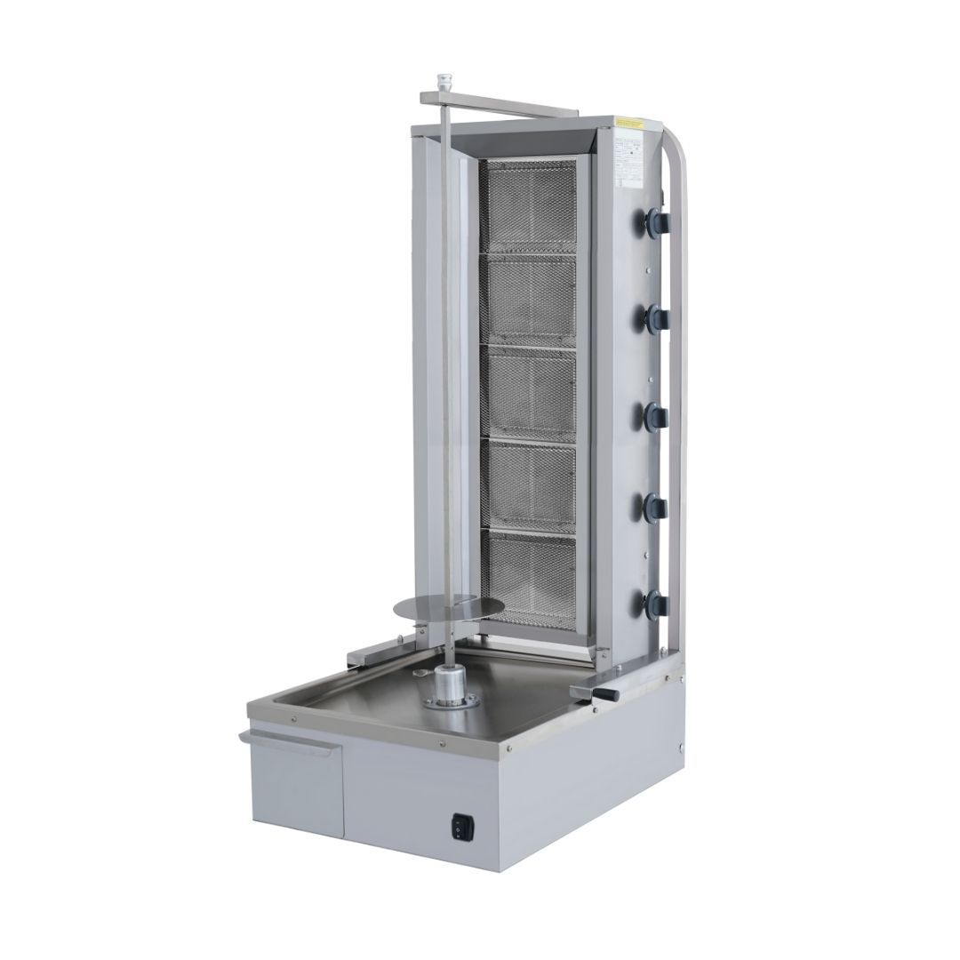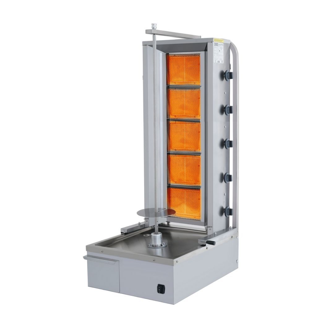 Gazlı Döner Ocağı 5 gözlü alttan motorlu. 100 kilo et kapasitesine sahiptir. Dibeksan ® brülörler kullanılmaktadır.